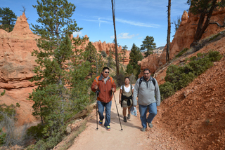 Today we have two options for hiking in Bryce Canyon National Park. We will be starting at 8,000 feet and are worried are normally sedentary bunch may have some trouble. After finding out all the trail heads are open, it is up to us to decide. We opt for the 4.9 mile hike with an elevation gain of 3,000 feet (1,500 feet twice as it is a double loop) or the single loop but longer 5.5 mile hike with about 2,500 elevation gain.