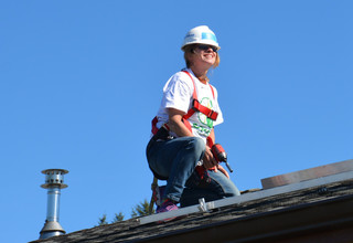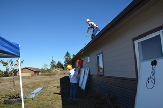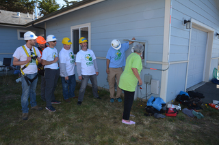 We start the day with coffee, bagels and an hour reviewing safety. I smile. One of the reasons, I support the Challenge is to expose people to the different ways we see the world and breaking through misunderstandings. Imagine our view of safety in the USA, prepping the site, rules for placing ladders, using harnesses, how to carry tools, appropriate footwear…and then imagine us on the phone or email trying to manage a project where all those rules do not apply. As an example, as we scrambled up the hill to the school in Rwanda, we noticed the folks there hammering away at some cut up trees about 2 inches around…they were building our ladder for the day…if were to have applied our USA rules, nothing would have gotten done in Rwanda…on the other hand, on our beautiful perch on the very northern coast of California, the rules made for an extremely efficient and effective day. We finish three homes in 6 hours. Group 2 will likely be repeating the feat tomorrow.