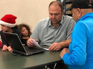 The evening began with a community dinner and then Andy Hatch, Shad MacPheters, and Chris Quitoriano distributed the laptops and demonstrated the software while answering questions.