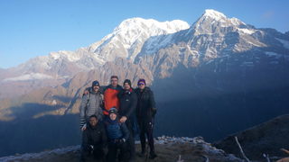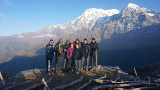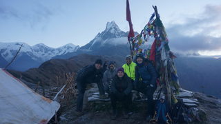 At 4 am we all surfaced from the High Camp dorms very cold but nonetheless determined to reach the viewpoint on the route which was just before Base Camp of Mardi Himal. Unfortunately, Nasfa was feeling unwell and elected to remain at High Camp with some of the others. We also had a couple of people turn back as this proved to be a very tough climb. It was more like rock climbing than hiking, but it was a relief to finally reach the top of the viewpoint of this trek unscathed.