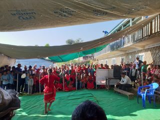 A very touching welcome awaited us as flower garlands were placed around each of our necks and we got to walk down a 30 meter corridor of very cheery, clapping children to the main presentation area.