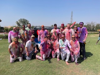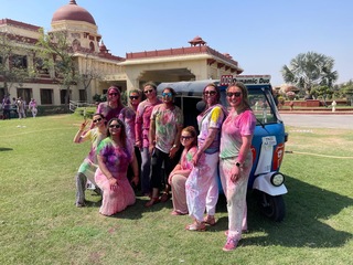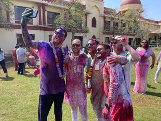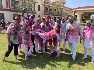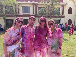 Now that I had been properly immersed in the colors of Holi, I finally took a moment to take in the scene: silver platters piled high with pigment, water guns at the ready, a DJ blasting tunes I would absolutely Shazam for future listening, and all of the people who have made this week such a success dressed in what I knew to be white at the start of the day (but was absolutely not white anymore).