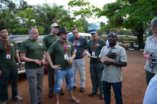 By the time the hikers get back to the lodge at almost 7 pm, the other teams have arrived. As only a small number of people can go on a chimp hike at a time, we had to break up into two large groups. Group 1 left at 7:15 am and Group 2 at 10:15 am. The 2nd group was chosen to leave later as many of them had landed from the USA less than 12 hours before. Group 1 also included KP Rav4 and Shaka Zulu who got so lost en route, they missed the hike today. Funnily, this includes Shaka Zulu who were the first to leave the gates of the hotel in Entebbe at 7:15 that morning. This is even funnier as Eric was on the preview trip and should have had a better idea than anyone where he was going! Even worse, Eric and George arrived after everyone from Group 2 had already arrived.