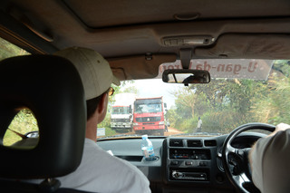 Their mood was lightened as they caught up with us, encountered some baboons and saw that we were only 30 minutes from the end of a log 7 hour drive. I had to laugh as we pulled over to see Andre and Joseph walking through some brush to peer into the rain forest looking for what might have been a white colobus monkey they had seen. I was laughing as we had just seen a bunch of baboons and I could only think of the frantic hustle back to the car in case one showed up. In any case, Jim, Ed, Echo, Drew and I joined them to no avail. No white colobus monkey today.