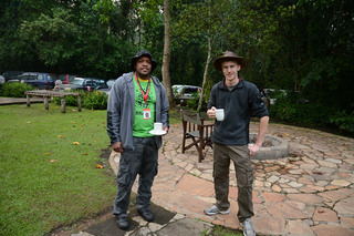 After breakfast, Teams Haraka, Poli Poli 2014, Photon Cultivators, KC Enginerds and Solar Bear who had seen the chimps yesterday headed off to Queen Elizabeth National Park (QUNP). The rest of us, walked down to the visitor center to register and get debriefed on our morning trek. We split up into three small groups of 5 or 6 and headed out. Luckily it was not raining and we encountered a few chimps who were very high up in a massive “fig” tree eating fruit, and dropping the remnants down around us.