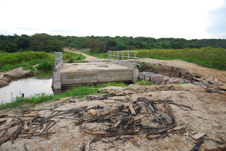 So we plowed on. We even crossed over where a bridge was washed out…someone had helpfully piled up a lot of debris.Uganda 2013 Drive to Katonga 15 At this point, we are starting to get a bit nervous. The photo in the banner at the top of this blog is an actual picture I took at sunset, nowhere close to our destination. Now notice where the green arrow hits the blue arrow. Well, we were looking for the “blue arrow” road in the dark…obviously you can see from our GPS track that we missed it and looped back, and added at least 2 hours to our already long “6-hour trip”.